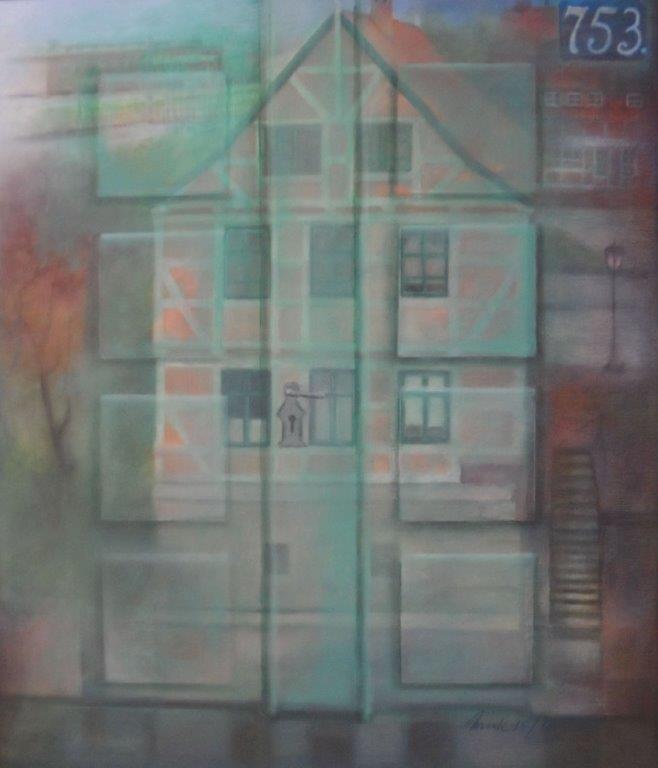 “Haus 753-Baumhaus Stade” – Öl/Eitemp./mixed media/70 x 60 cm/Leinwand/20015