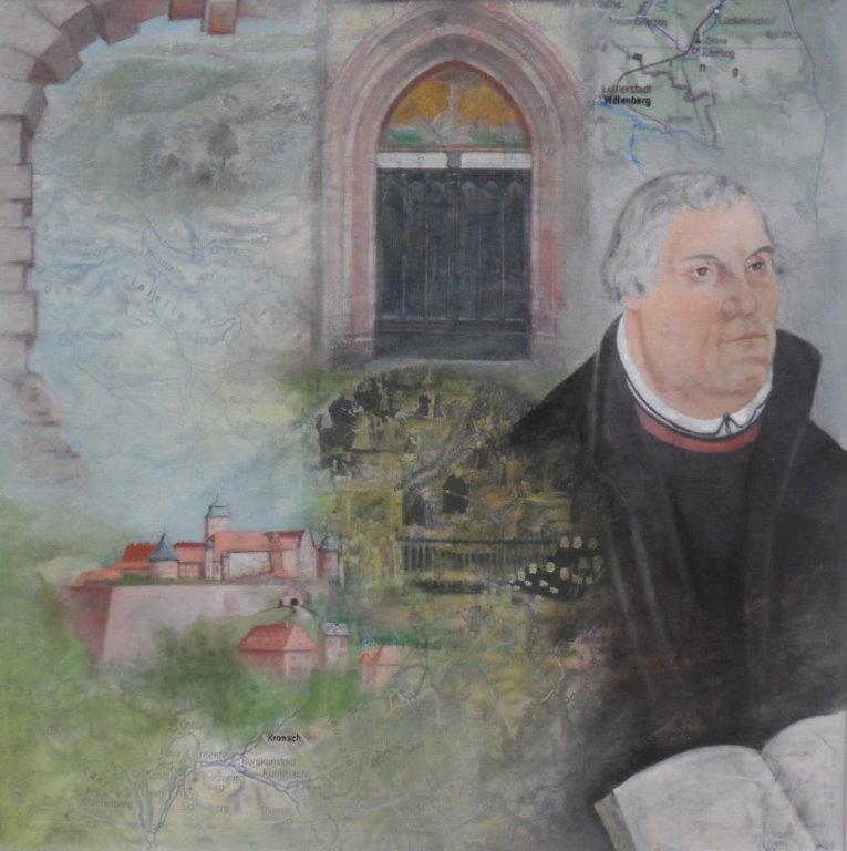 “Zum Lutherjahr – Zwischen Wittenberg und Kronach” – Öl/mixed media/80 x 80cm/Leinwand/2014