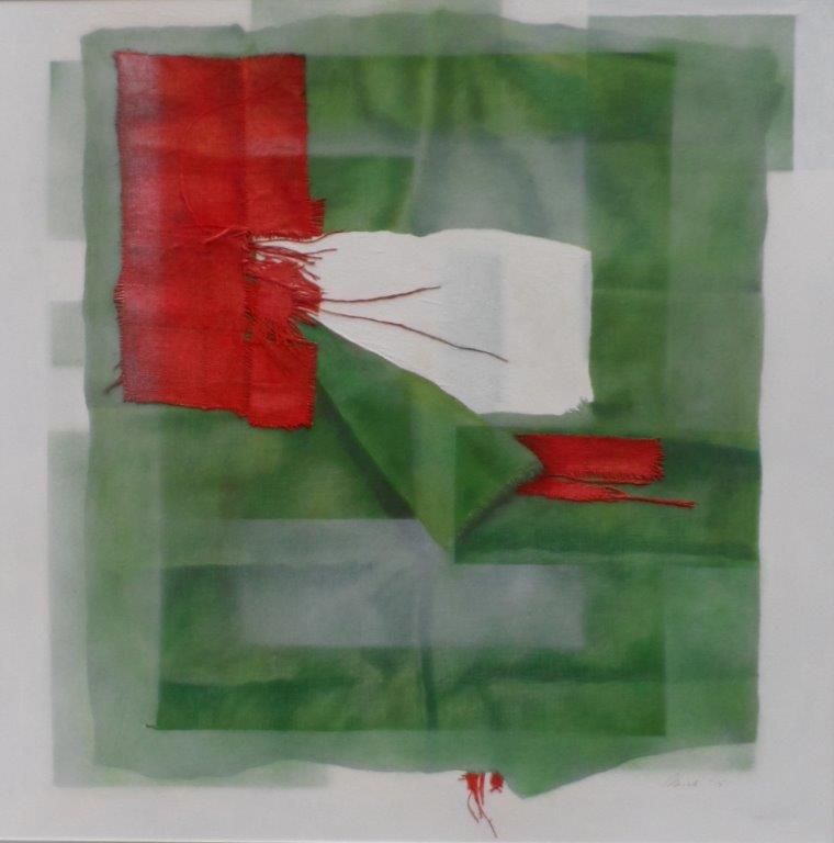 “Rot auf Grün” – Öl/mixed media/80 x 80 cm/MDF-Leinwand-Collage/2015