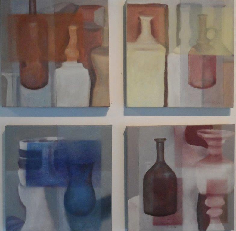 “Stillleben nach Morandi” – Öl/mixed media/4-teilig/je 30 x 30cm/Leinwand/2006/12
